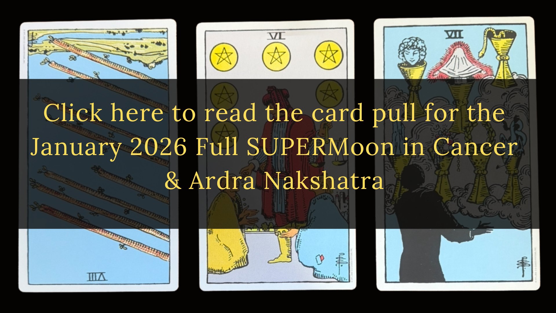 This is the first full moon of 2026, and we pull the SIX OF PENTACLES as our present card. This moon also happens to be in the 6th Nakshatra of Ardra, which spans from SIX to 20° of Gemini. In numerology, the number 6 is related to magic and family. In the Tarot, pentacles are related to prosperity, including our network of loved ones. This card wants us to count our blessings as we reflect on the year behind us, and continue to trust in the ever-growing abundance that is coming our way. Notice the person on the card holding the scales. He is weighing out how his finances should be distributed. The universe is doing the same right now. it’s weighing out your mindset and determining if your belief systems are worth more. Ultimately, it comes down to gratitude. Notice the two beggers, one in blue and one in yellow. The yellow cloaked figure is receiving the coins, because he holds a gracious mindset. He finds joy no matter his condition, and because of it, he is rewarded. Notice how the person in blue is still waiting for a handout. Blue represents honesty. Are you living an honest life? In other words, are you living in alignment with your soul, purpose destiny? If so, be patient. You are next in line to be paid! If you feel off or as if you’re still searching for what’s next in your life, keep working to find it. Just as the card shows, the universe is helping you weigh out your options. If the proper choice is made, abundance will come your way! In Vedic Astrology, this moon represents both destruction and transformation. We can let our minds deconstruct our will to grow, or we can let ourselves be open minded to ever evolving change. With this moon ruled by the south node in the east, we have the opportunity during this lunar portal to completely shift our karmic bloodline. Take advantage, and seize the abundance ready to come your way!